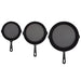 • Skillet set includes 1x 6-inch, 1x 8-inch, and 1x 10-inch